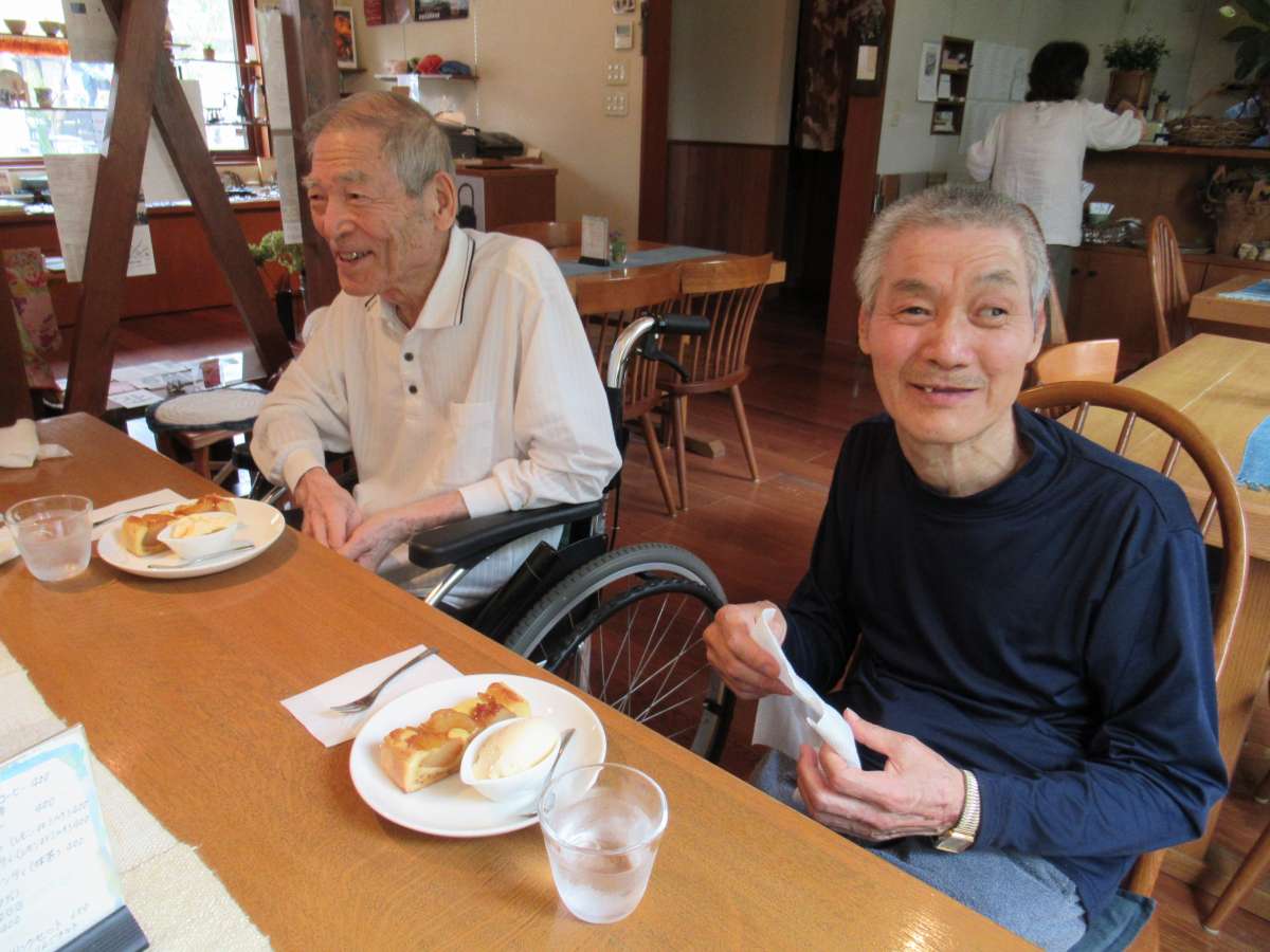 こんにちは、みんなの家・大宮内野本郷のツクイです(^ー^) 今日のレクは【お茶会】 施設から歩いて数分の所にあるカフェに行って来ました(^^) 皆さん 『どんな所だろうね』とワクワクしながら向かいました(^^) お店の中はクラフト&ギャラリーになっていて手作りのお皿やコップなど置いてありました。 お茶が出てくる間観賞され 『素敵ね』 『このカップでコーヒー飲んだら美味しいだろうね♪』 と目を光らせていました☆