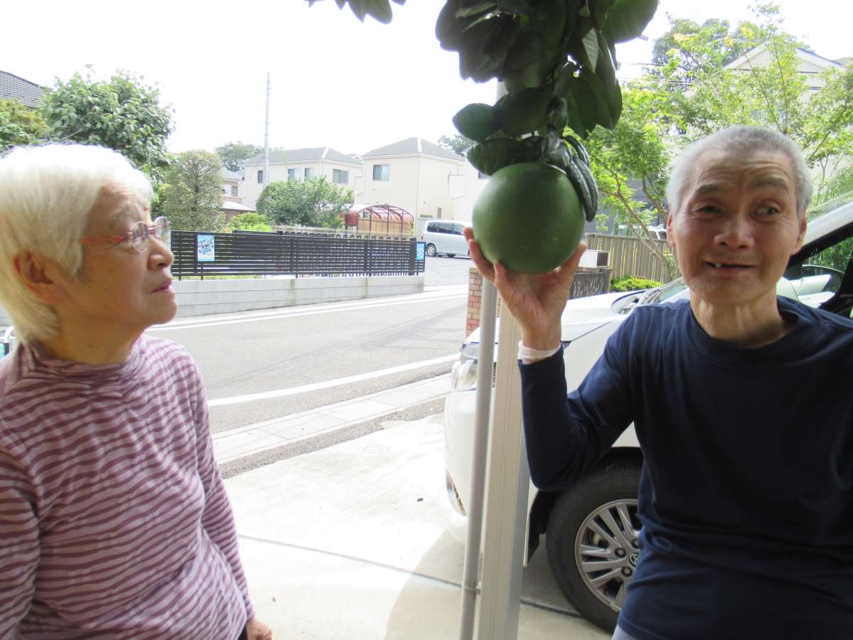 帰り道大きな果物?を見つけて 『顔よりデカイよ~』 『あ~楽しかった♪』 と笑い声と笑顔で帰ってきました(^o^)