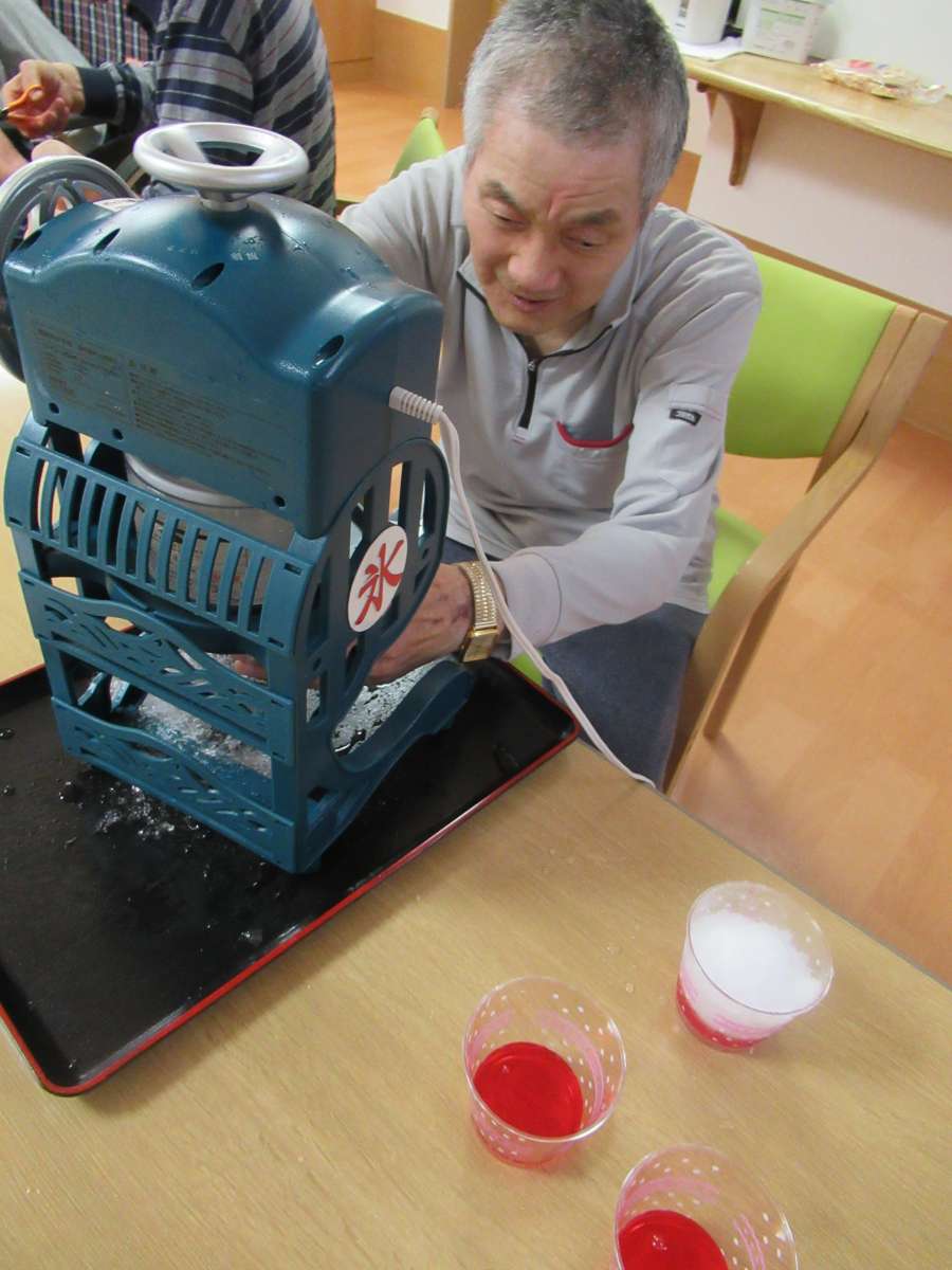 そんな中、みんなの家大宮内野本郷ではおやつにかき氷を作りました。
