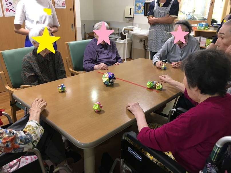 折り紙を教えてくれて、相手の陣地にボールを転がして遊ぶ