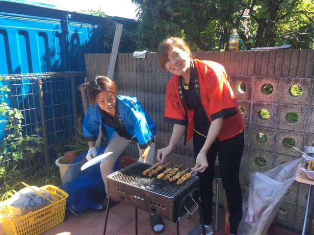 ホーム長自ら焼き鳥を焼いています(^_-)-☆