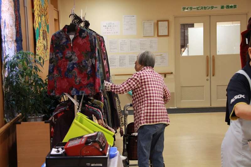 (#^^#)グループホームみんなの家 西東京で~す。 10月25日(金)1階エントランスにて、秋冬物のお買い物サロンが開催されました。皆様普段は、ご自分の服を買いたくても買いに行くのが大変で、職員に頼んだり、ご家族に頼んだりと、ご自分の目で見て気に入ったものを買い求めることが、なかなかできなくなっているので、年に2回春夏物と秋冬物を、真剣に選ばれ買い求めておられました。中には、ご家族が付き添い、試着し嬉しそうに楽しまれているご家族や、男性のご利用者様も見えておられました。また、北から南までの物産展があったり、かわいらしい帽子を試着されたりそれだけでも楽しめたお買い物サロンでした。