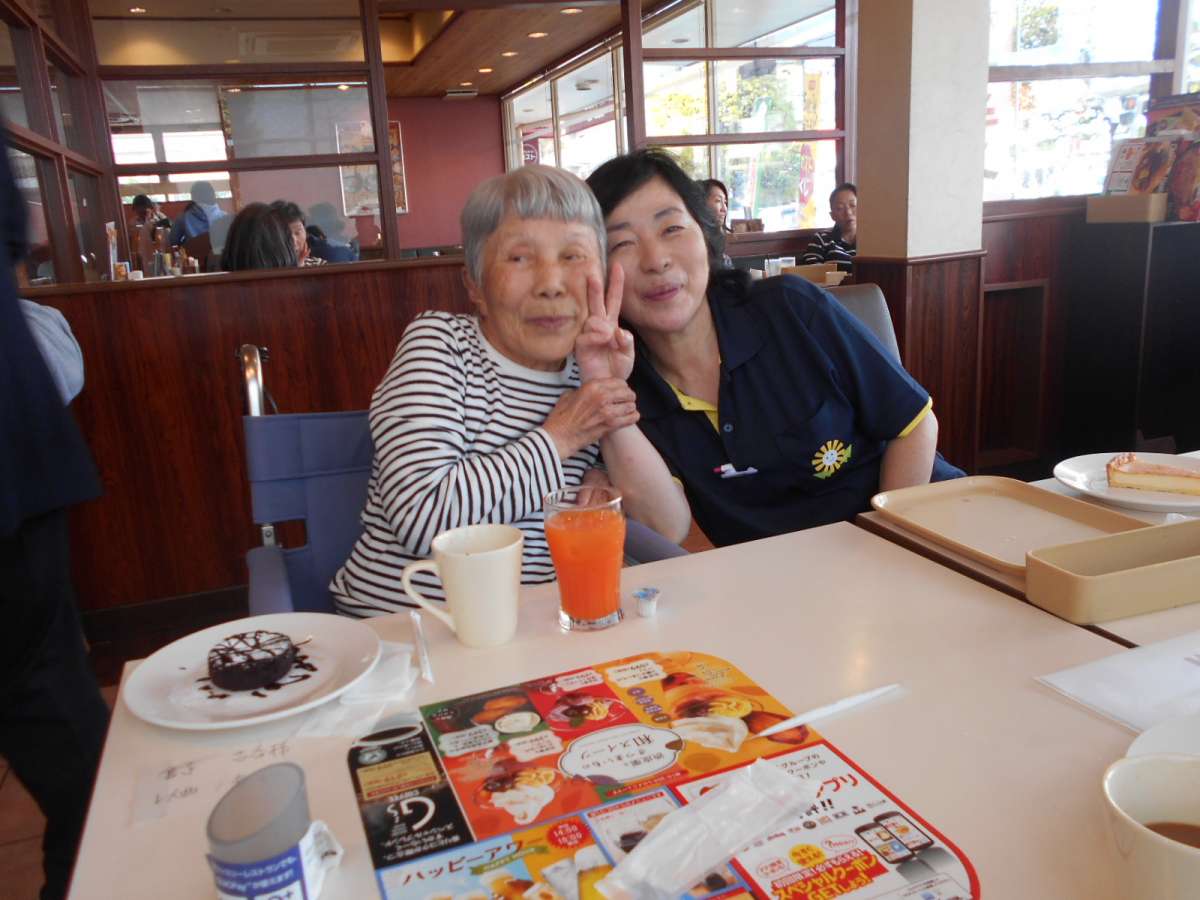 | こんにちは、グループホーム みんなの家・春日部花積です。 某ファミレスへ出かけ、ケーキとお好きな飲み物を 頂き、大満足の利用者。 外出も外食レクも初めての方が大半です。 少々、緊張気味の様子も見られましたが、 ケーキを召し上がると皆さんこんなに笑顔になられました。 |