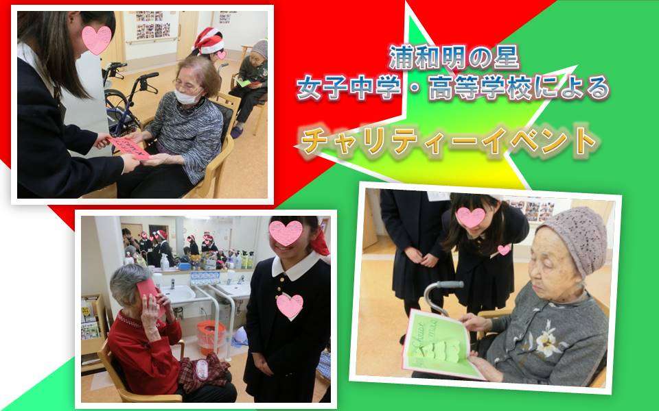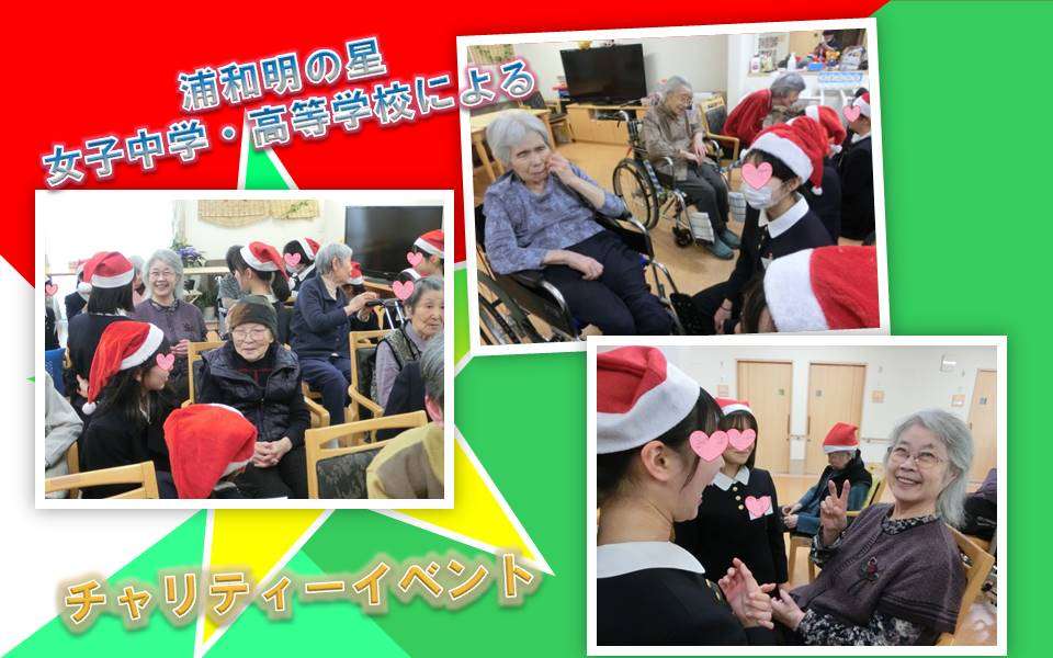 毎年、12月には浦和明の星女子中学・高等学校の先生と生徒の皆様がお越し下さります。今年は2019年12月18日にて45名によるチャリティーイベントを開催!!