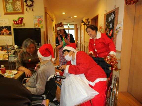 皆様こんにちは! グループホームみんなの家・横浜宮沢2です。 今年も残すところあと僅かですね。 先日、ミニクリスマス会を行いました(*^▽^)/★*☆♪ ホーム長のピアノ演奏で皆さんでクリスマスソングを歌い、その後ケーキと紅茶を召し上がりました♪ そして今年も そり?に乗った(笑)サンタさん登場でプレゼントが配られ、 和やかな雰囲気で皆さん楽しんで下さったようです(*´∀`)♪ サンタさん、来年も来てね~\(^o^)/