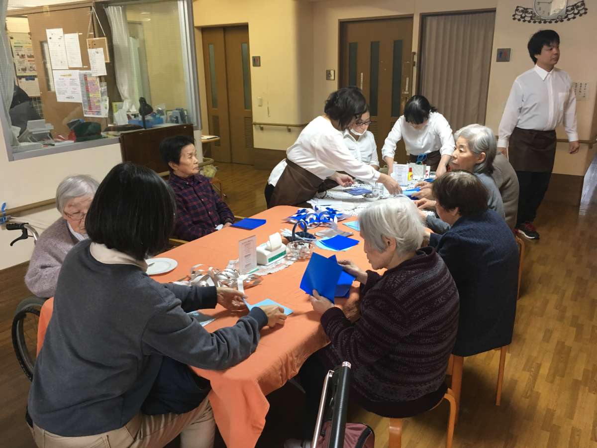 みんなの家・与野鈴谷にはいろいろな趣味や特技を持った職員がおりまして、その中でも折り紙上手な二人の職員が担当させていただきました。