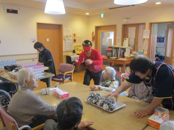 皆様こんにちは♪ グループホームみんなの家・横浜宮沢2です。 今週は節分の豆まきをしました! スタッフが鬼に変身し、皆様「鬼は~外!」と言いながら鬼に豆を投げていましたよ(^o^) 終わった後は鬼さんと記念撮影です(笑)