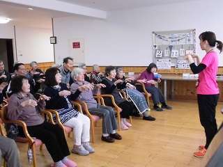 昼食後、皆さまは本館の食堂ホールにて、体操の先生を待っていました。