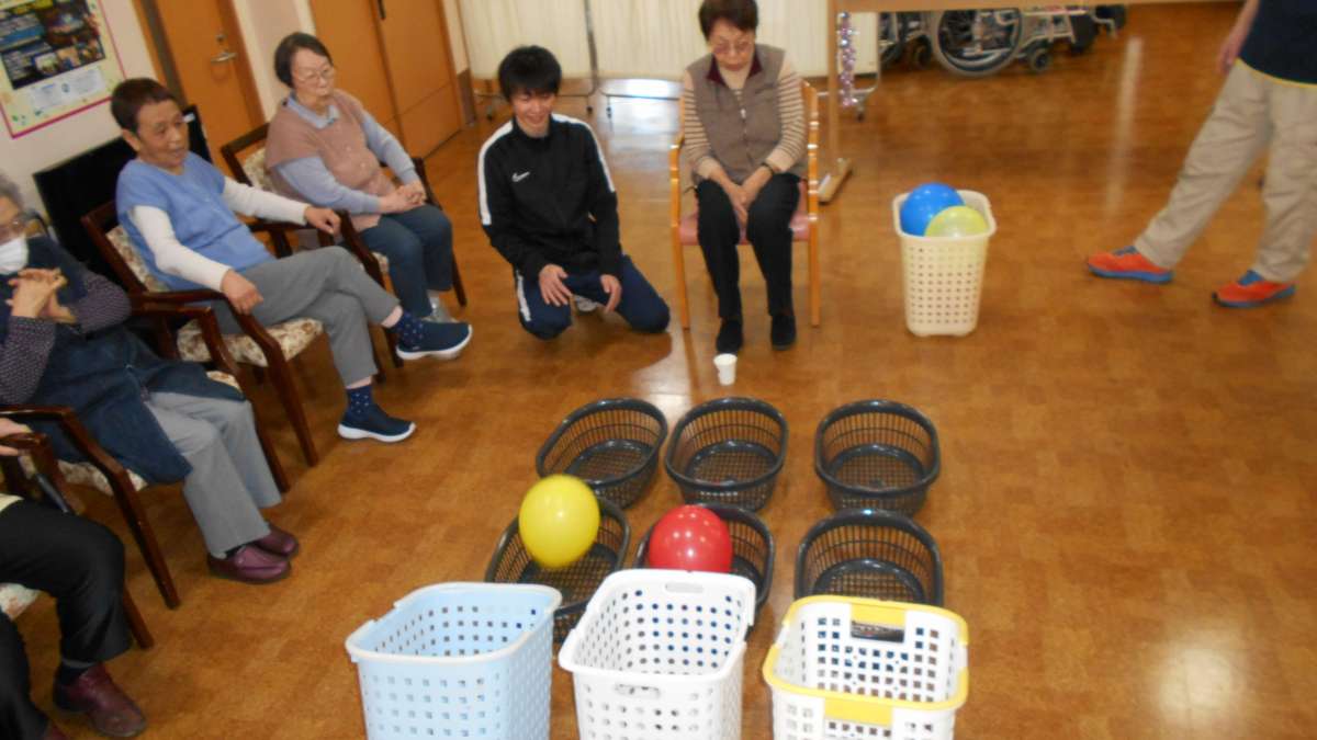 デイサービスではレクリエーションに2チームに分かれて風船サッカー対決を行いました☆