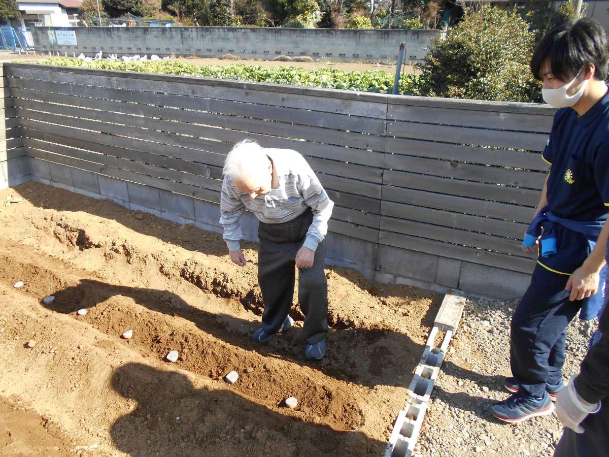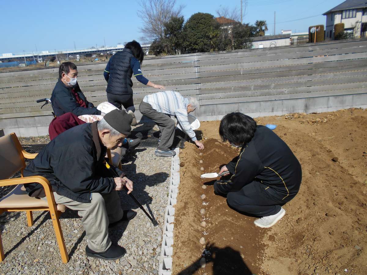 今年は暖冬で春が早く来ています。先日、利用者の皆様と職員で畑を耕しました。