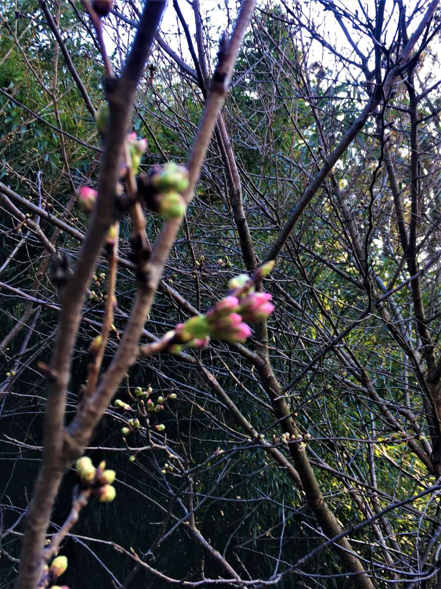 気晴らしに天気の日に駐車場に出てみると、裏庭の桜の蕾がぷっくりといくつもなっているではありませんか!!