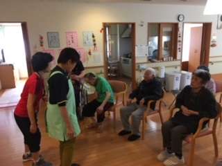 研修の成果か昼食前に早速口腔体操とNÕA体操を行っていました(^_^)v