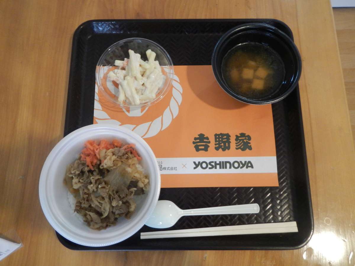3月22日(日)の昼食は、なんと!吉野家の牛丼が登場しました。