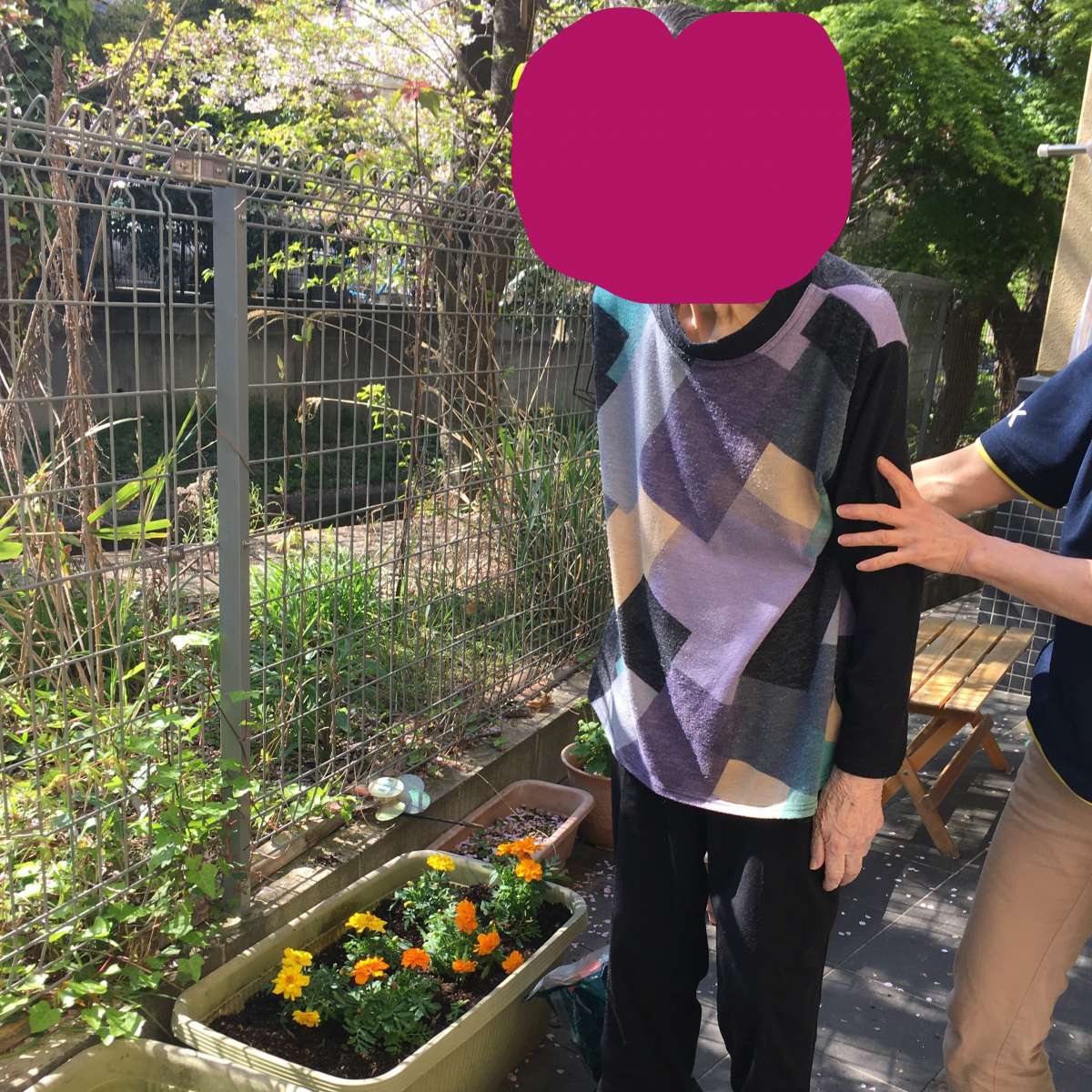 お花を植えて、お庭のお掃除をしました♪