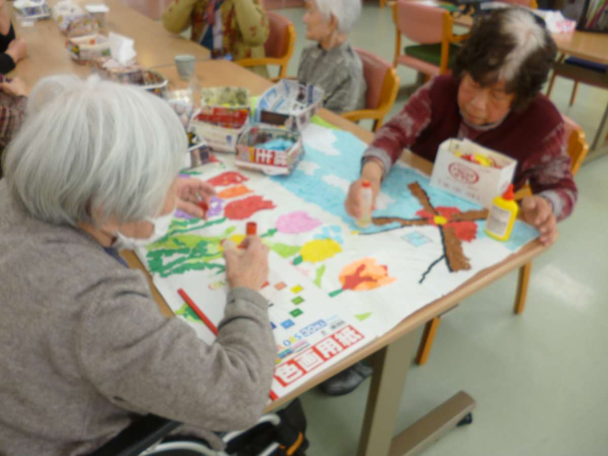 春の訪れを感じる”貼り絵制作”に励んでいます!!