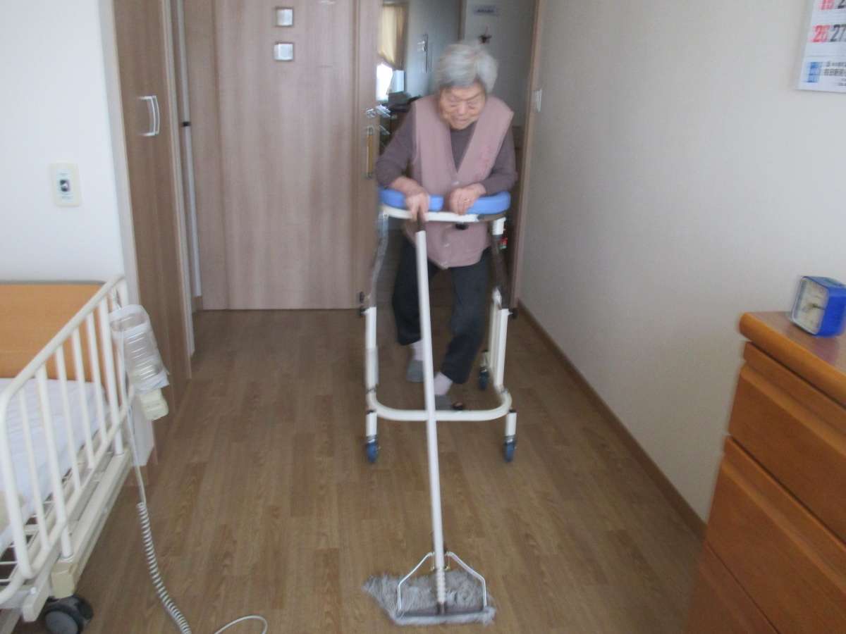 ご入居者様にはご自分のお部屋のモップ掛けをお願いしています。