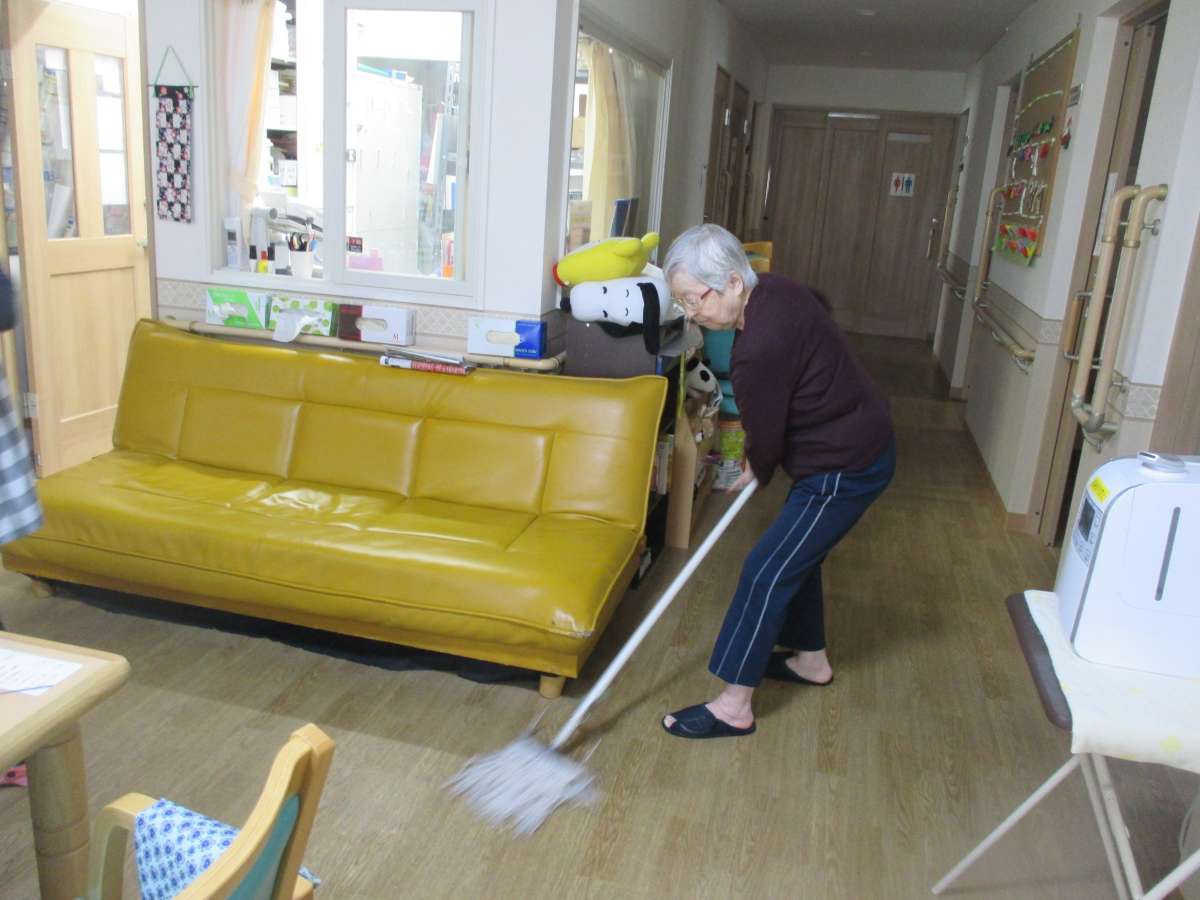 「朝のお掃除」をスタッフと一緒にご入居者様も頑張って下さるんです(^-^)