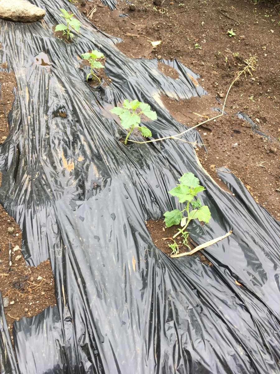 F様が掘って植えてくださったきゅうりもすくすく育っています。