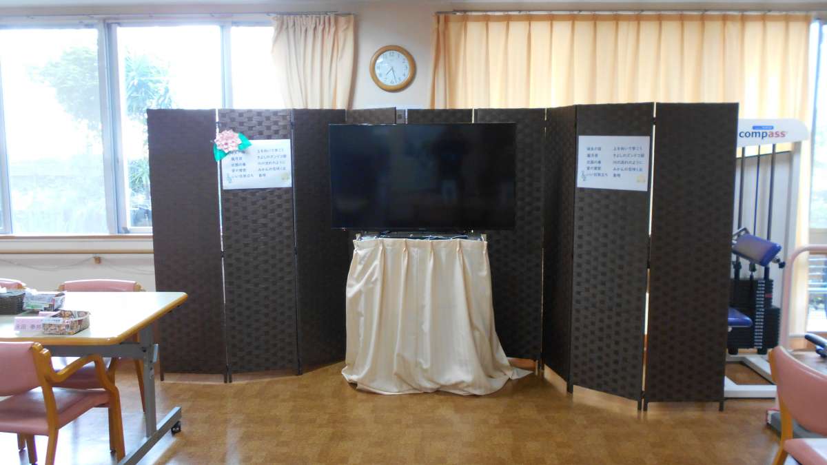 また、曲に合わせてご利用者様と職員とが合唱し、ルーム内は