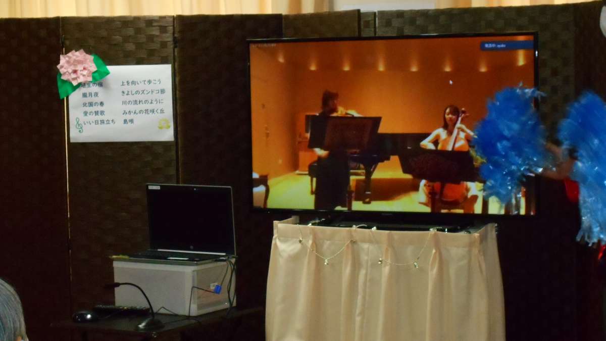 美人姉妹が演奏する会場とオンラインでつなぎ、テレビ生中継