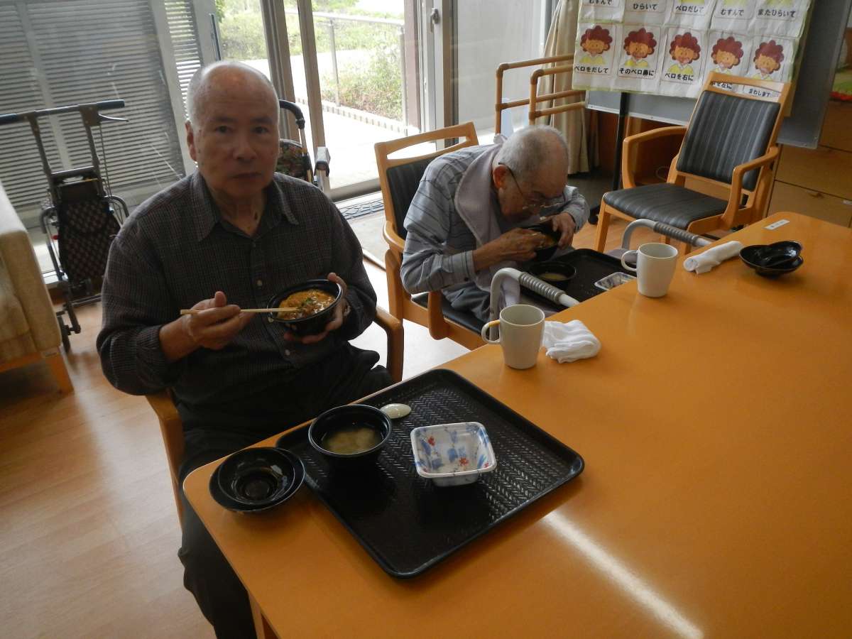 みなさん「いただきま~す」の合図とともに、丼ぶりとお椀の蓋を取り、早速箸を伸ばしていました。