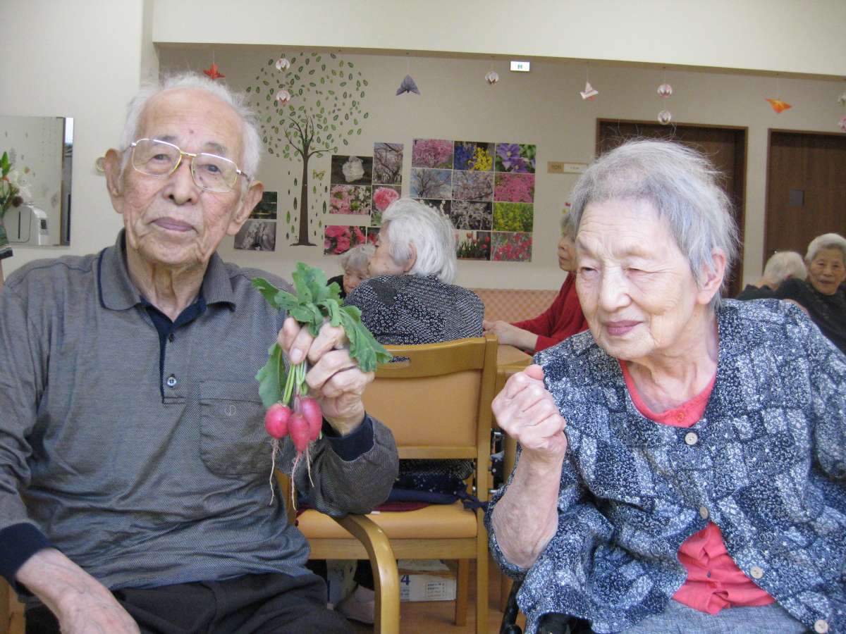 ご利用者様にも収穫を味わってもらいました。『わー、すごいねぇ・・・ これなんていうの? もう食べれるの・・・??』 と仰られました(笑) 介護職員苦笑いです。楽しいひと時でした!!