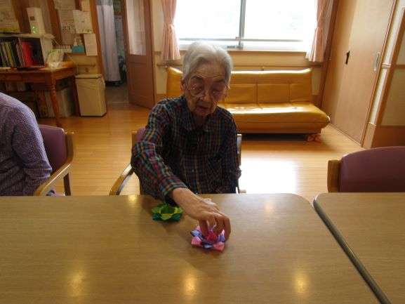 スタッフが折り紙で作成してくれた「コマ」です。