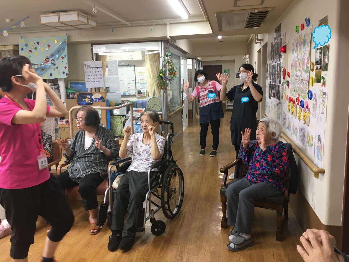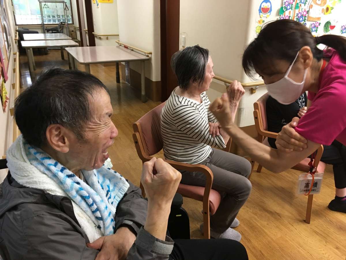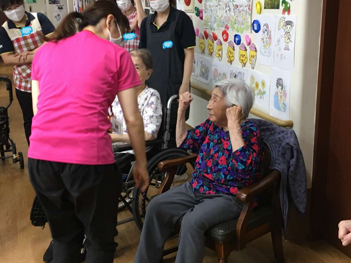 ご利用者様も介護職員も、バッチリ元気ポーズを決めました\(^o^)/