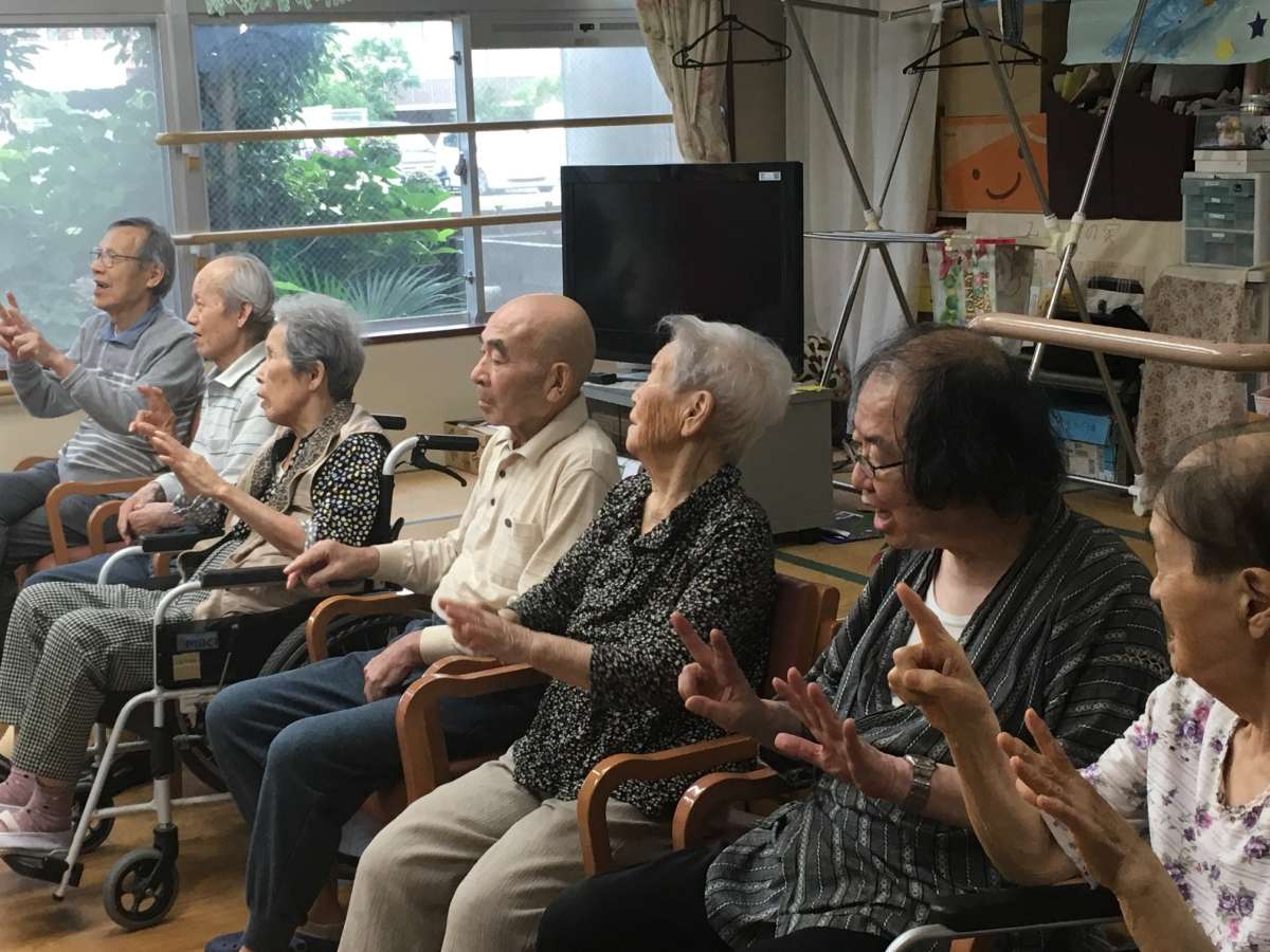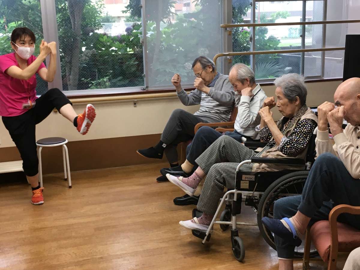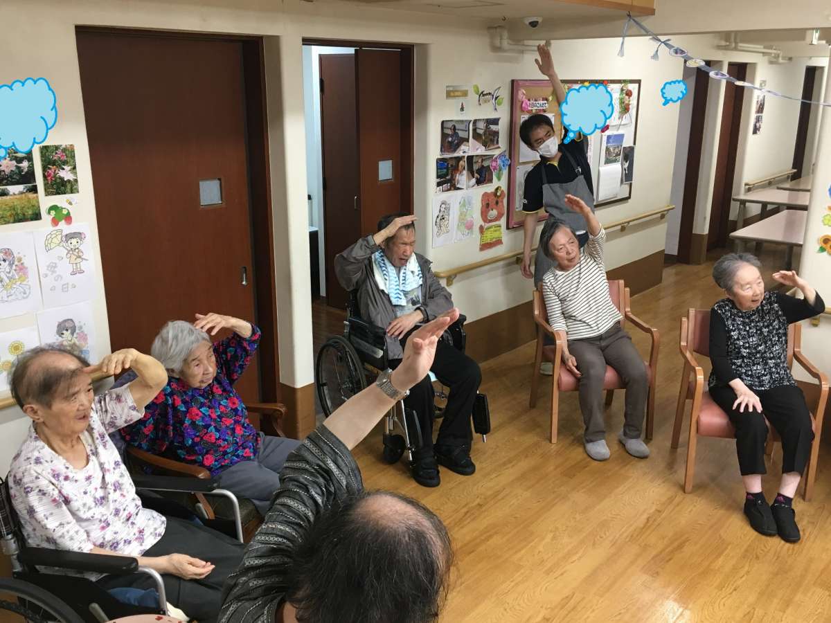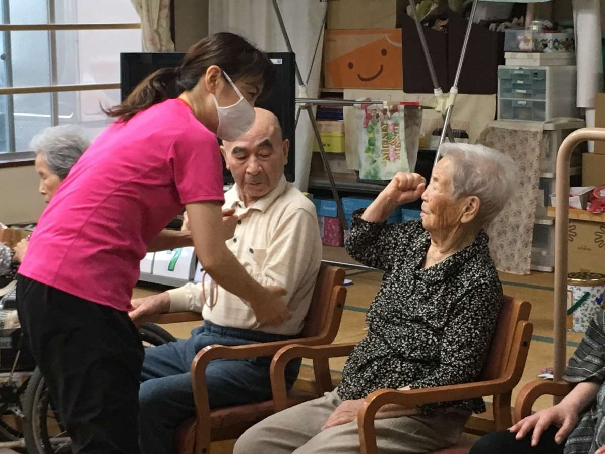 ご利用者様も介護職員も、バッチリ元気ポーズを決めました\(^o^)/