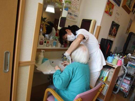 入居者様には毎食後ねに歯磨きをしてていただいてますが、「今日は歯医者さんが来ますよ」 とお声掛けすると、