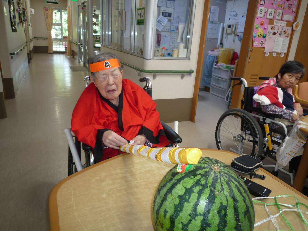 夏も本番、納涼祭開催です。午前中にスイカ割りを行いました。