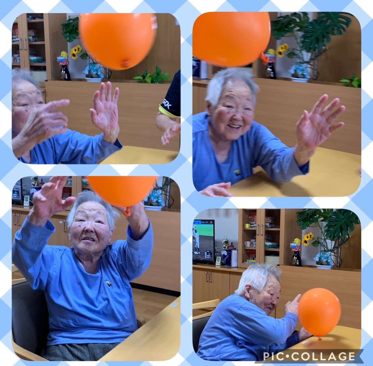 S様はいつも穏やかでニコニコと笑顔が素敵です。そして何より色々な事に一生懸命です。風船バレーも手を伸ばし笑顔で楽しまれていました。