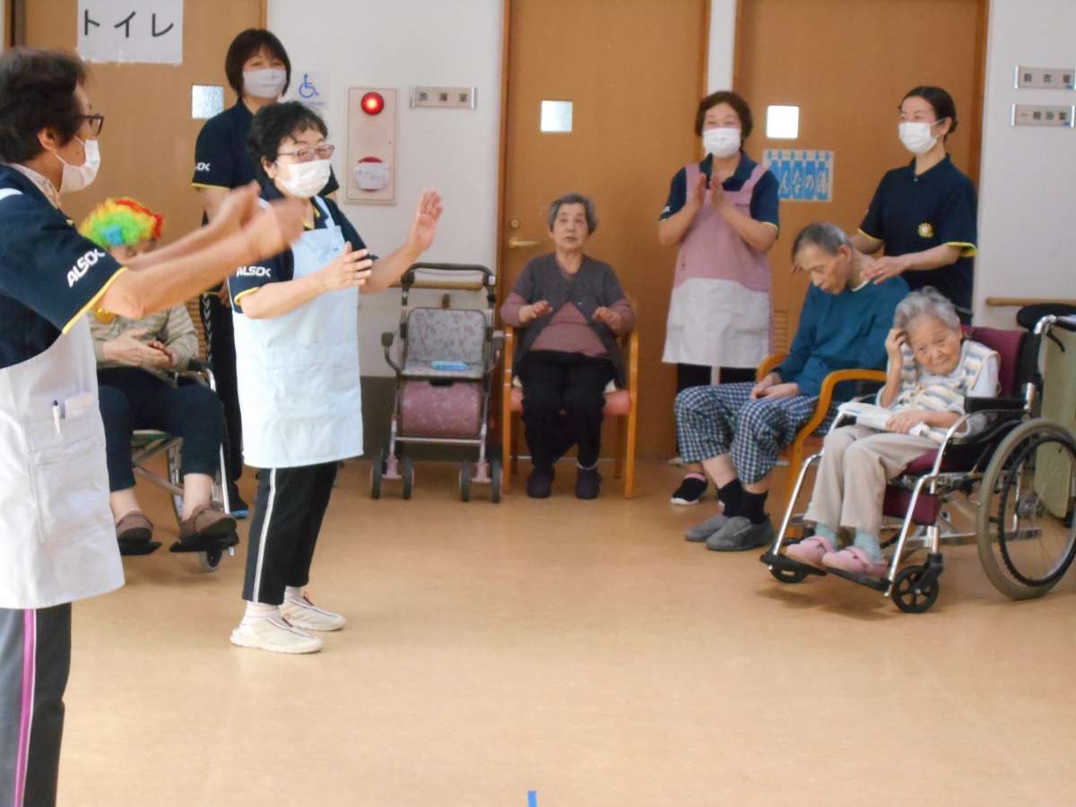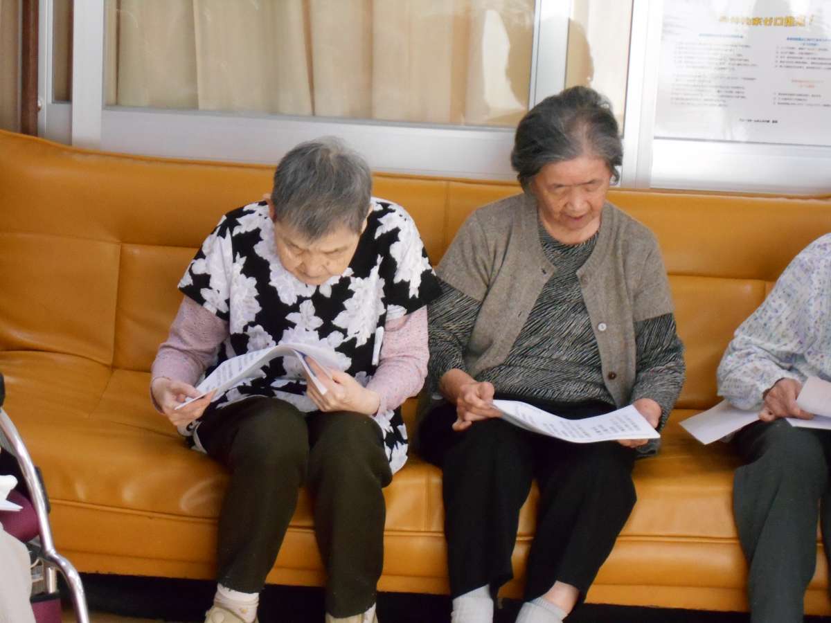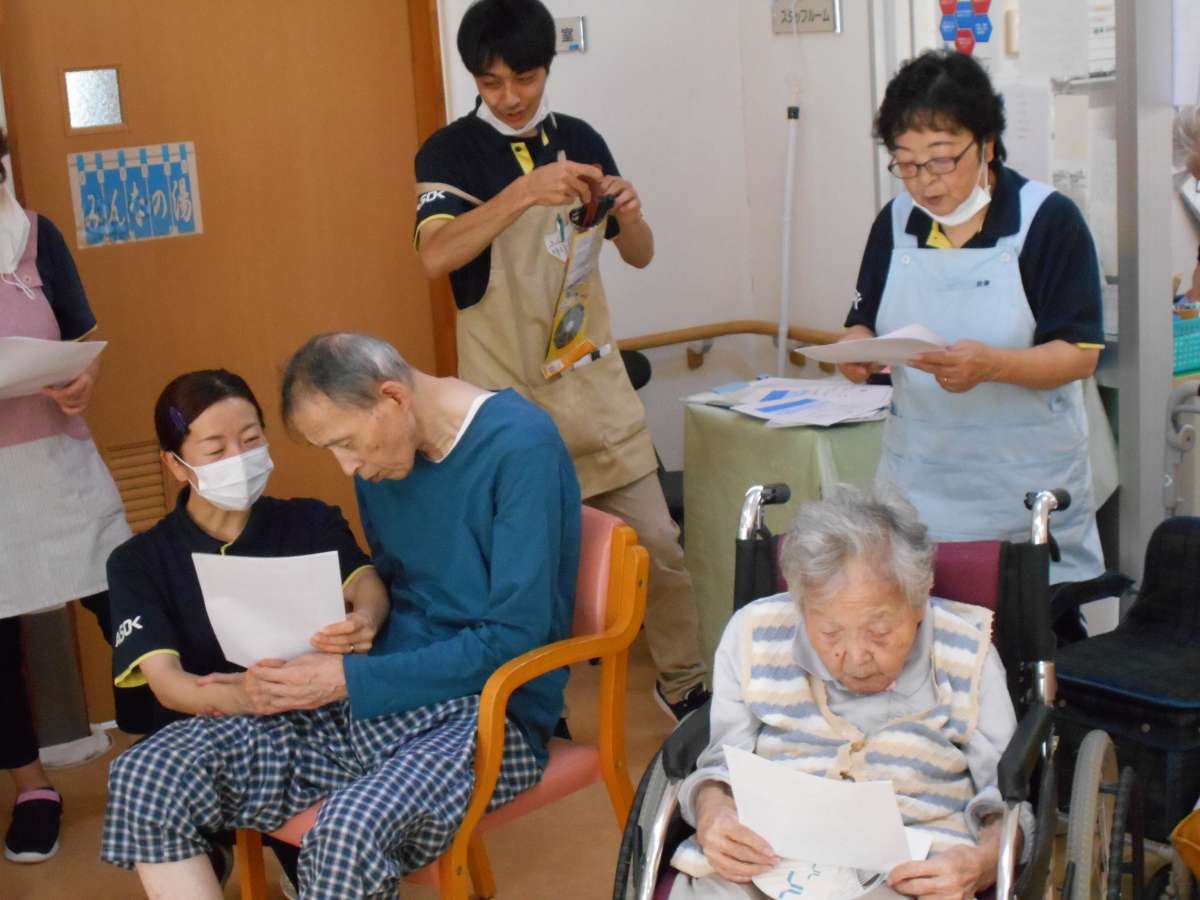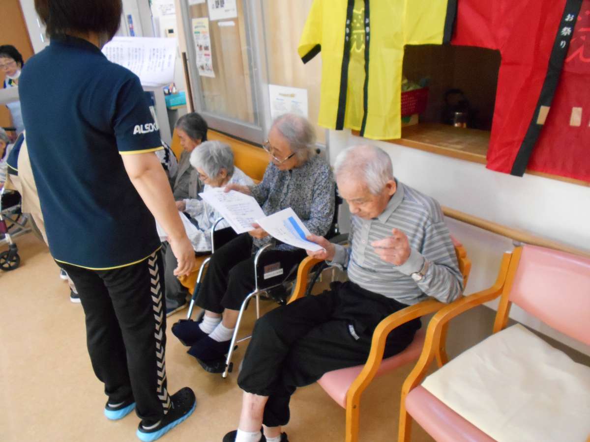 射的、輪投げの後は、職員と入居者の皆様で歌を合唱しました。