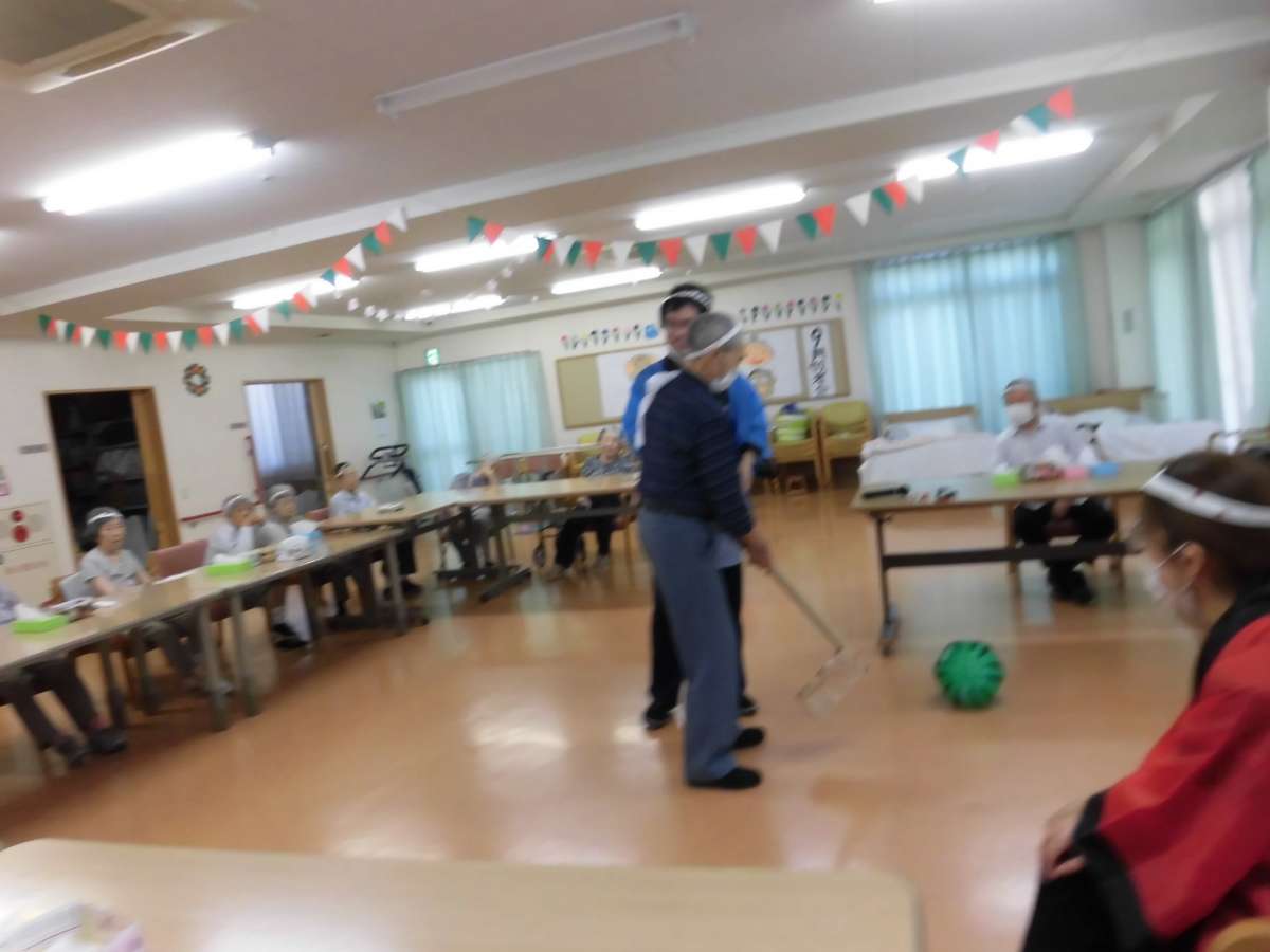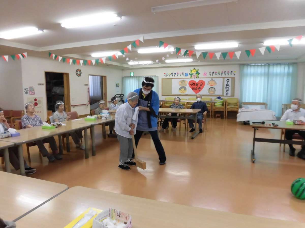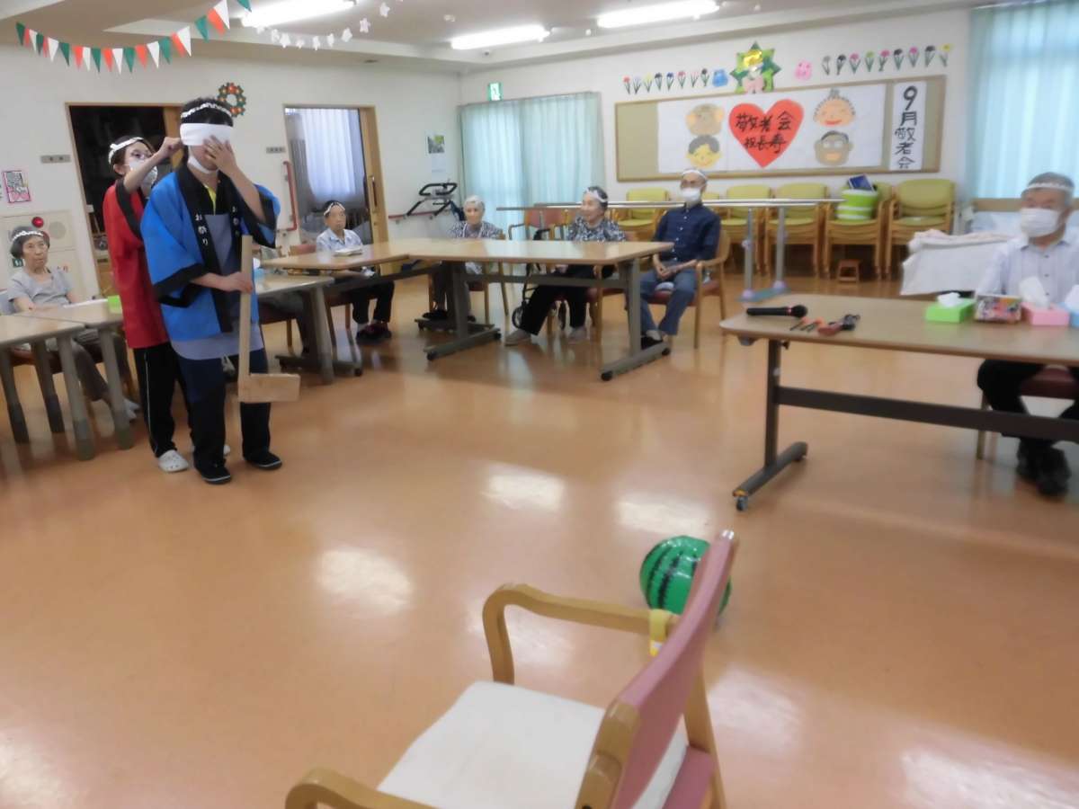 まずは定番のスイカ割りです。職員とご利用者様の共同作業となりました。