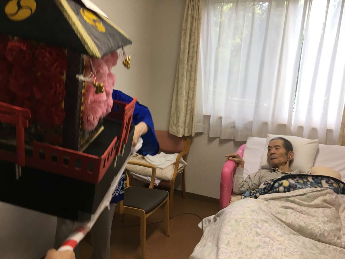 お祭りの締めにはご利用者様に参加していただき、おみこしを担ぎました。
