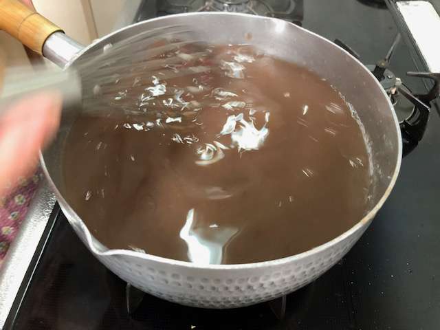 ①材料はこれだけ~ ②水が沸騰したら寒天クックを混ぜ混ぜ