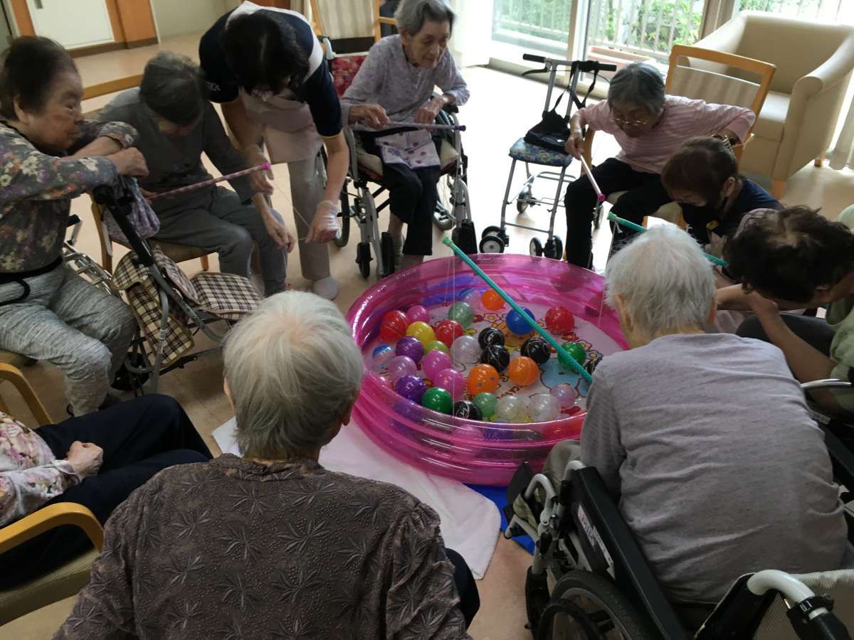 お祭りということもあり皆様には童心に帰って頂き、ヨーヨー釣りをしていただきました(≧▽≦)ゞ