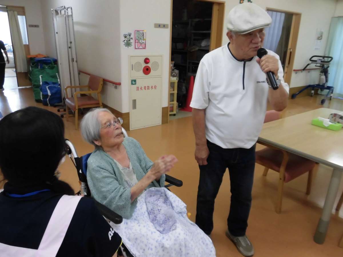 最後の締めとしてご利用者様が替え歌をご披露し、更にその替え歌で他のご利用者様のお名前を呼んで唄うという事を行いました♪違和感が全くありませんでした!