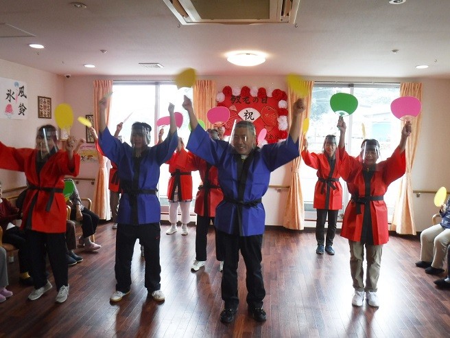 ハッピを着て「お祭りマンボ!!」を踊ります~