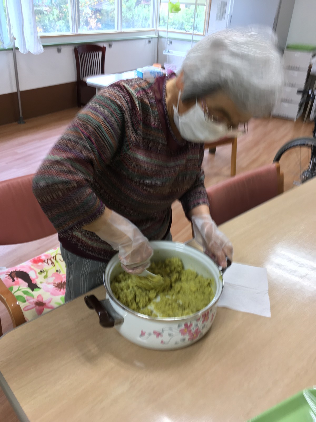 本日は2階のご利用者様 職員数名と共同で スイートポテトを作りました。