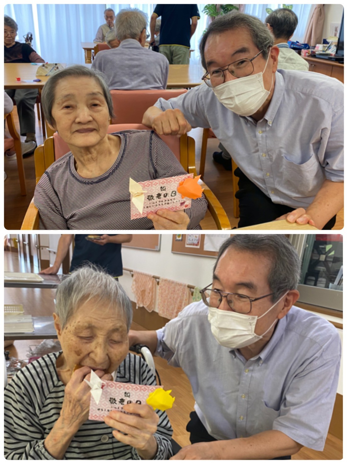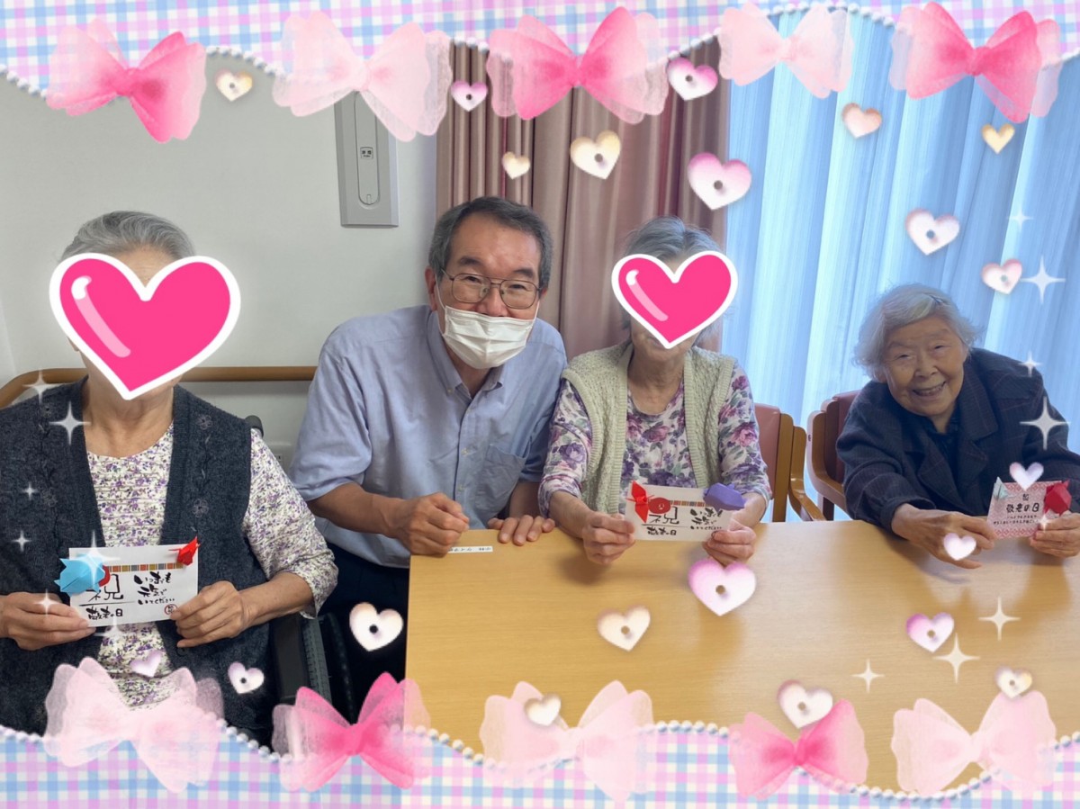 こんにちは。みんなの家・大宮内野本郷のコダマです(^。^) 花の丘公園そば。さいたま市西区。 宮原駅西口よりバス6分&徒歩4分のところにある施設です。 リニューアルに伴い、ブログupが遅れてしまい申し訳ありませんでした。今月からまた入居者方の沢山の笑顔を発信していきたいと思います。 先月みんなの家・大宮内野本郷では、『敬老の日イベント』を開かせていただきました♡ 『多年にわたり社会に尽くされてきたお年寄りを敬愛し、長寿を祝う日』ですね。 今年はコロナ禍で一階と二階の入居者様別々での開催になってしまいましたが・・・ スタッフからの心のこもったお祝いのカードと、美声が自慢の♬ナースからの『ハナミズキ』の歌のプレゼントや♡♡♡どら焼きでお祝いさせて頂きました♡加藤ケアマネとも記念撮影♬沢山の笑顔が見られました♡ 皆様、おめでとうございま〜す(祝)♬ これからもお元気で♡みんなの家・大宮内野本郷で楽しい思い出を沢山作っていきましょうね(๑˃̵ᴗ˂̵)