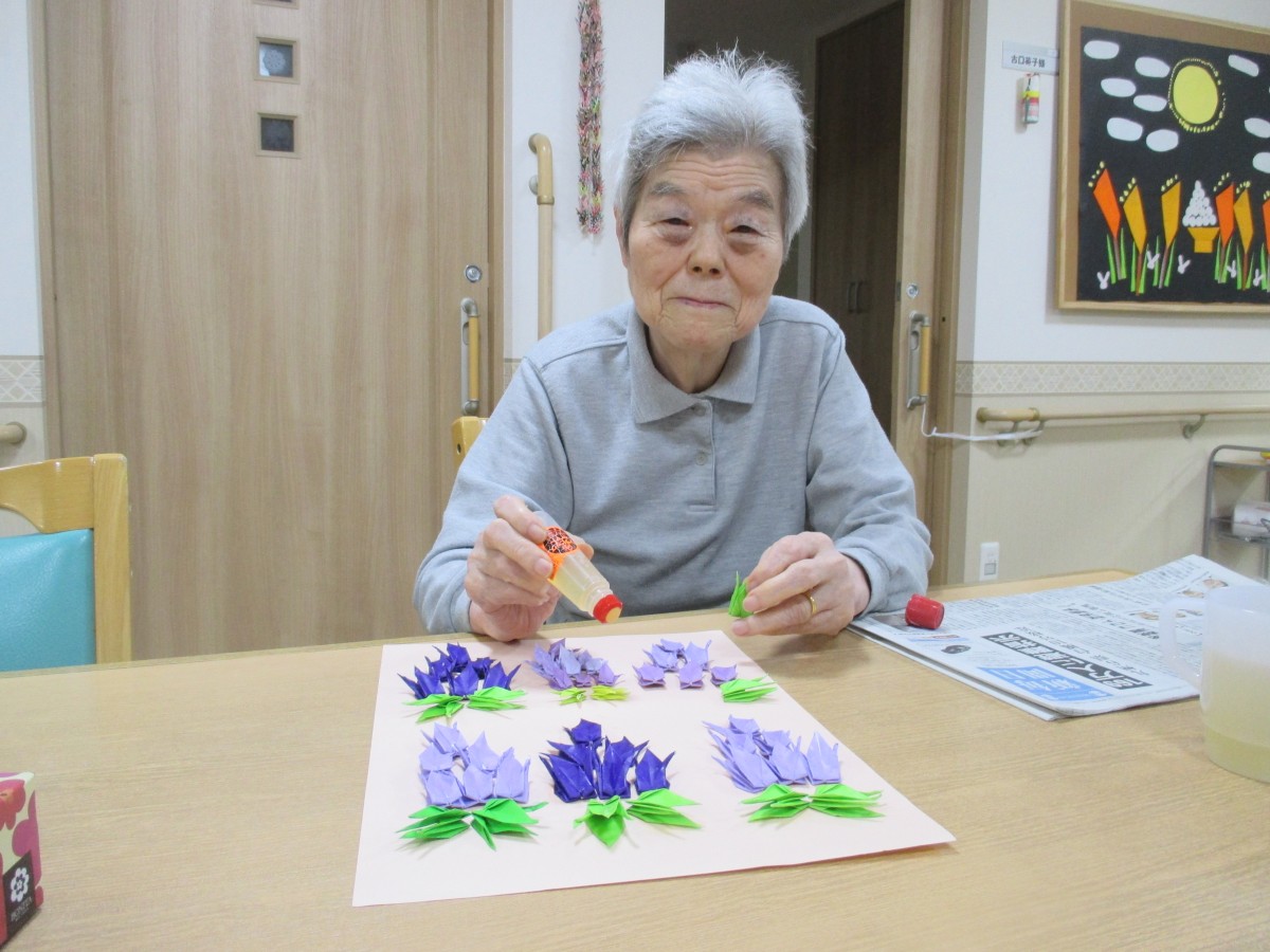 ご入居者様に折り紙で秋の様子を作って頂きました。