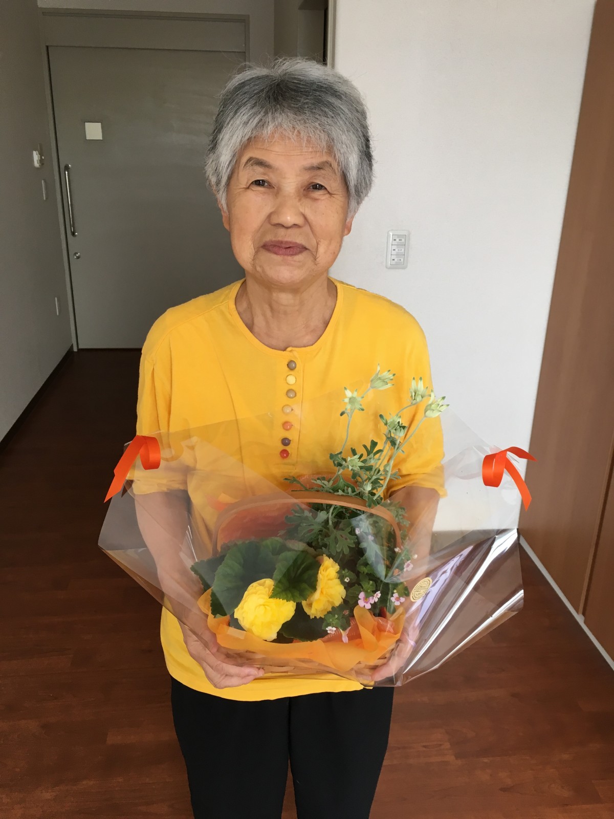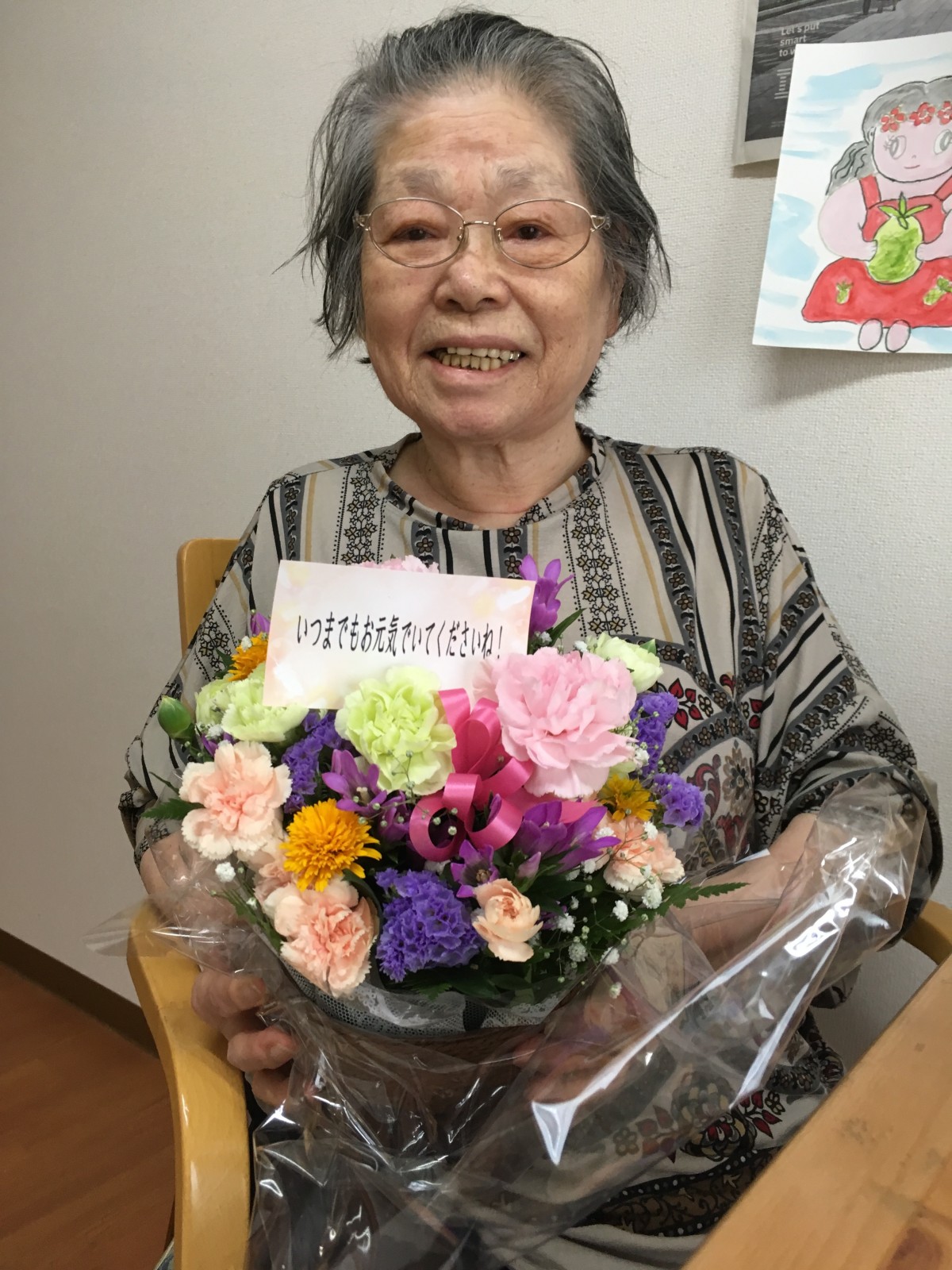 お祝いのお品はご家族様に代わって職員がお渡しさせていただいたのですが、皆様一様に笑顔で、ご家族様のお気持ちも