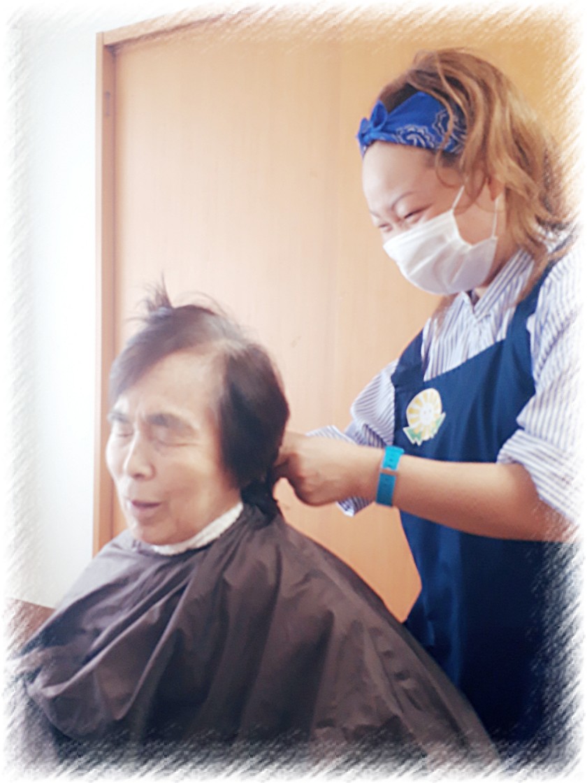 美容師さんとお話しながら、気持ちよさそうですね(´∀`*)