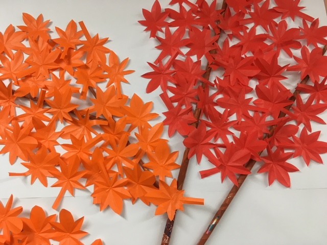 もみじ作りをして頂き、パラパラと貼って頂きました。