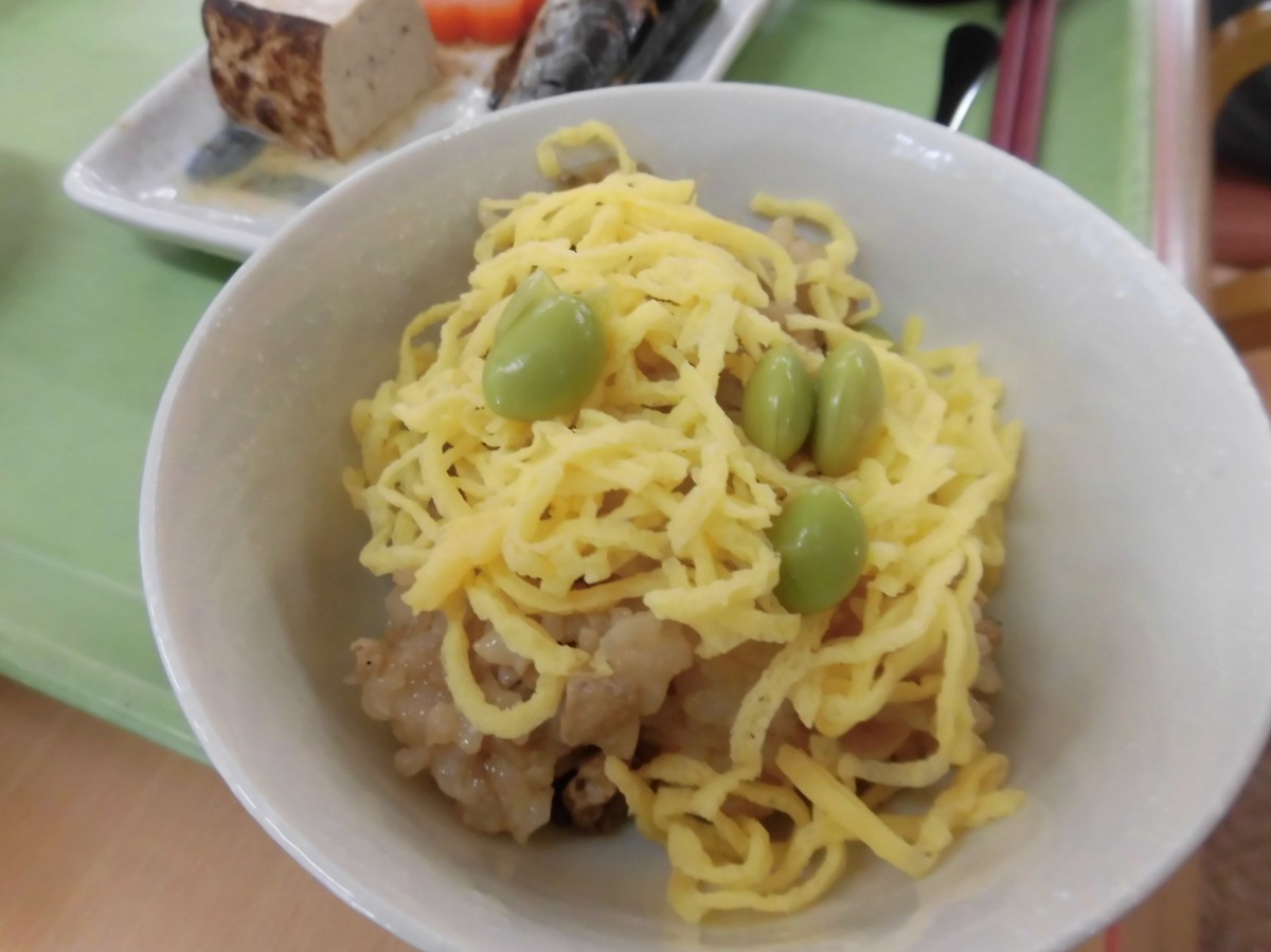 こちらのごはんですが、「もぶり飯」と言って地域によって呼び方が違いますが、混ぜるという事で混ぜご飯という事になります。色々と入っていたので、美味しいというお言葉を沢山いただきました♪