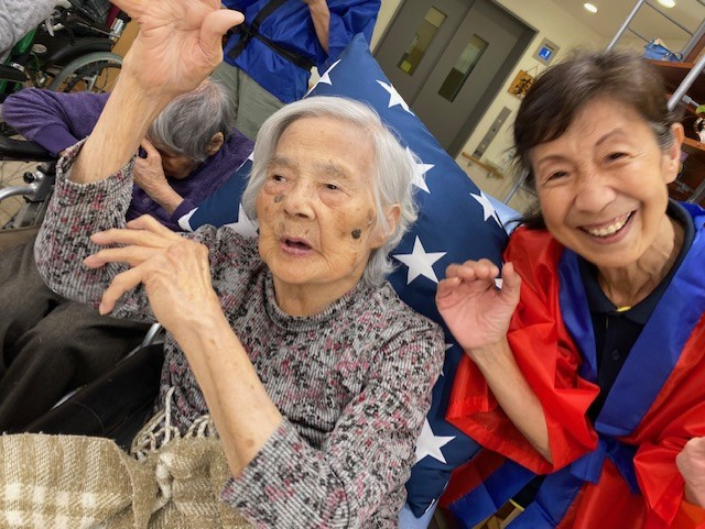 今年はコロナ禍ということで、ボランティアの方々を呼ぶことができませんでしたが、職員とご入居者様で歌を歌ったり、盆踊りを踊ったり、お饅頭を食べたりと、手作り感満載な会になりました。