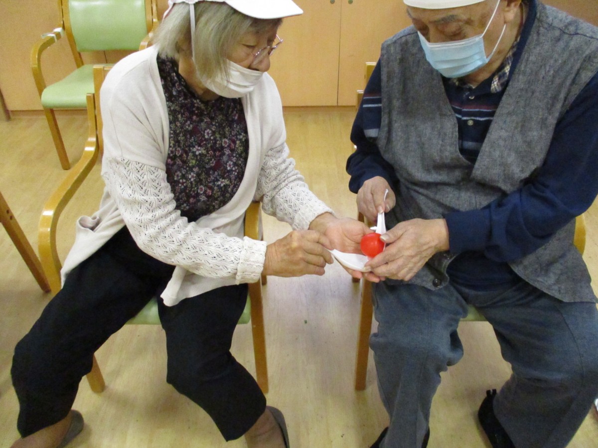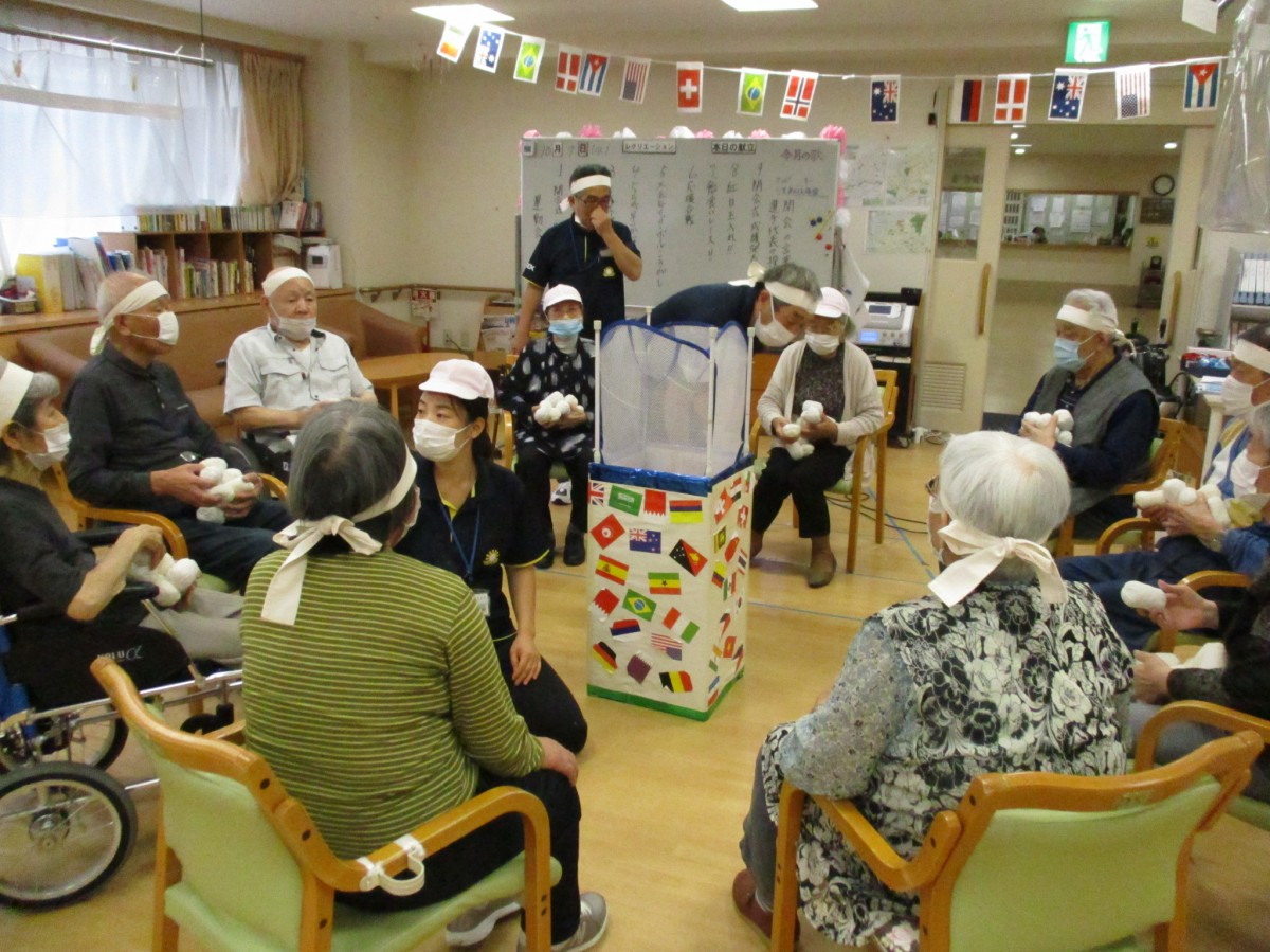 『紅白玉入れ』籠の中に入らなかった玉を職員も真剣にご利用者に素早くお渡ししました!