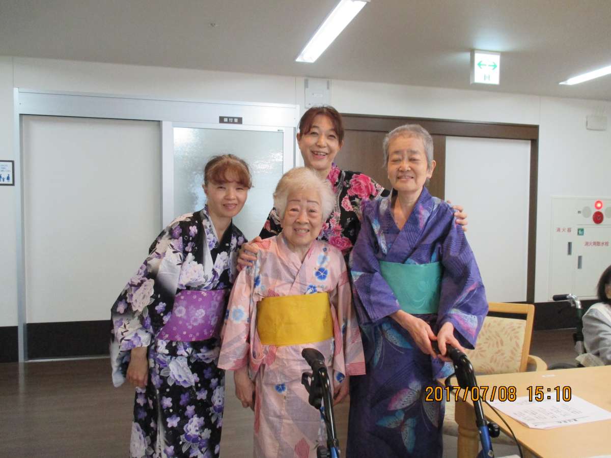 ご利用者様みんなで「たなばたさま」を歌い、浴衣を着て
