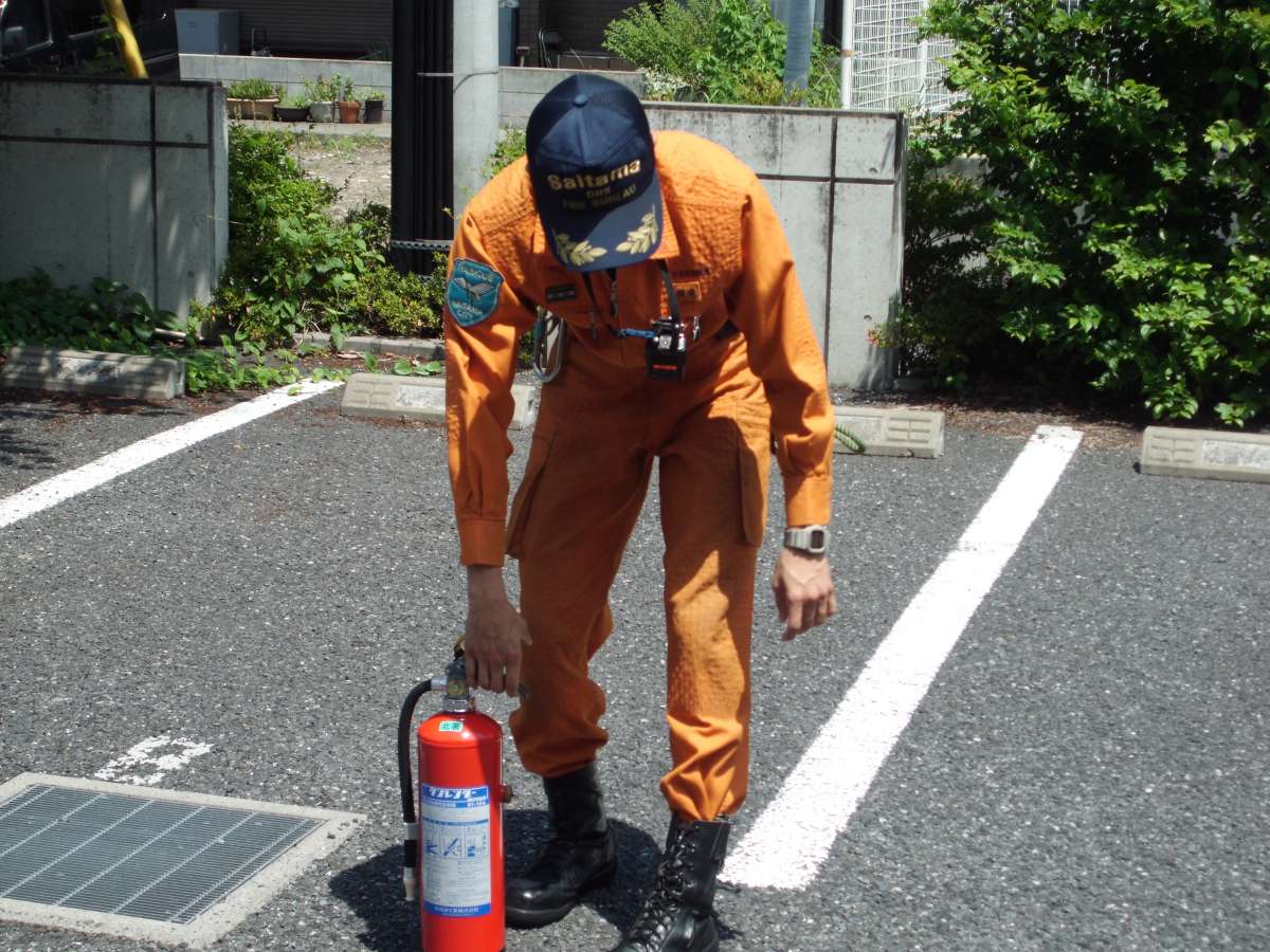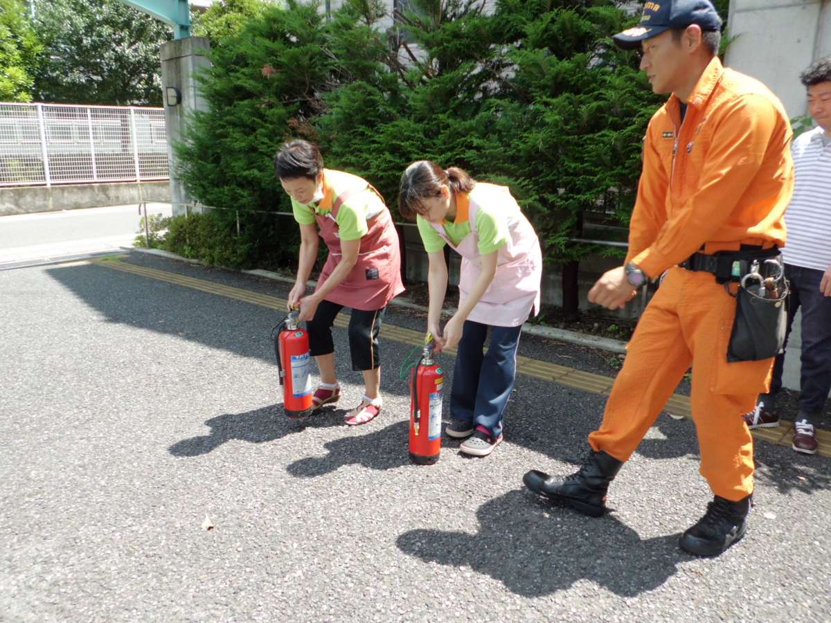 7月上旬、さいたま市消防局北消防署の立会のもと消火訓練、避難訓練、